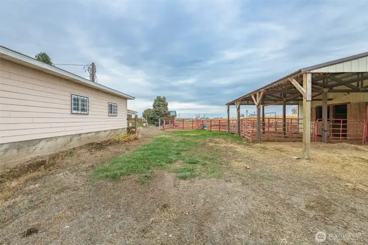 2.39 LEVEL ACRES CLOSE TO EVERYTHING! Nice brick home with up to 4 bedrooms, has two 3/4 baths one with newer tile shower and double sink vanity. Kitchen was updated to include cabinets, dishwasher, upgraded Jenn-Aire cook top with oven, side by side fridg, Large sit up counter and new flooring. Property also includes a newer detached 3 car garage, a 3 stall barn with a corral that opens to 2 fenced large sprinklered run outs for horses or?, and a storage building. Property also includes a seperate power and water hook up for an RV. This property has several possibilities , great opportunity. Home offered as is.