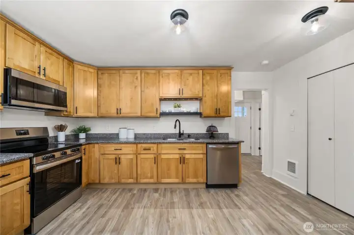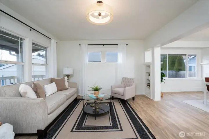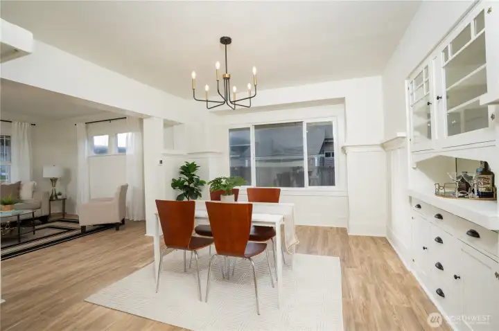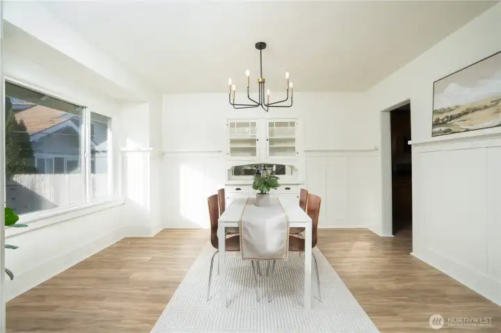 Discover timeless craftsmanship blended with modern updates in this beautifully updated 1914 home. This residence is priced to sell and move-in ready. Enjoy year-round relaxation on your covered front porch, complemented by a low-maintenance yard and garden area awaiting your personal touch. The open living room transitions into a sun-filled dining room for everyday living and entertaining. Original architectural details shine throughout, including built-in cabinetry w/service bar, board-and-batten wainscoting with plate-rail, and classic millwork accented by substantial wood trim. This 4 bed 1 bath, has new wiring top to bottom, new 30yr roof, seamless LVP flooring, brand new furnace, new appliances, updated bath, 1 car garage and more!