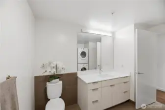 Stylish one-bedroom blends vintage charm with modern design in the heart of Seattle lively cultural and sports scene, featuring floor-to-ceiling windows, quartz counters, premium appliances with gas range, central A/C, and in-unit laundry. The open layout maximizes light and space. Generous full-bath. View deck off living room. Enjoy luxury amenities including 24/7 concierge, fitness center, wine lockers, pet run and wash, and a stunning rooftop deck with sweeping city and Sound views. With a Walk Score of 93, secure entry, and no rental cap, you’re steps from stadiums, waterfront, dining, theater, transit, and the revitalized Railroad Way—an ideal in-city home or investment opportunity.