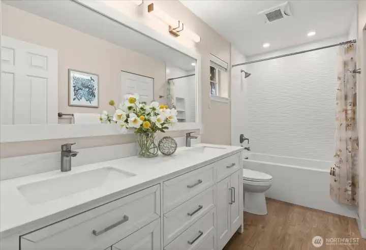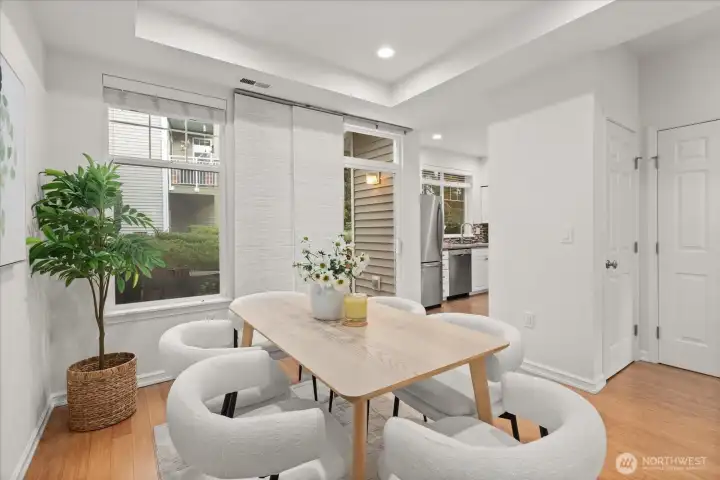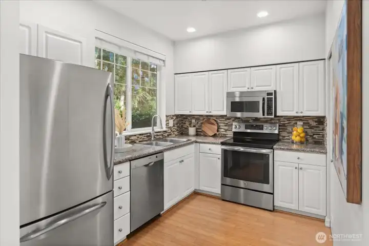 Welcome to this updated two-story townhome in Willow Grove community, in the heart of Redmond. This high-quality renovated home offers 2 bed and 2.5 baths, featuring bamboo flooring, granite countertops, fresh interior paint, soaring ceilings, a vaulted primary suite, generously sized bedrooms, a walk-in closet, and a patio overlooking a greenfield. An attached one-car garage plus extra parking right in front. Located just minutes from Microsoft, Whole Foods, Costco, restaurants, Light Rail, bus lines, and 520; a short walk to Starbucks and PCC. Pre-inspected. High efficiency Furnace 2019, bathrooms renovations in 2022 (over 30K in updates). HOA covers exterior,roof, attic, siding, water, sewer, landscaping. Desirable Lk Wash schools.