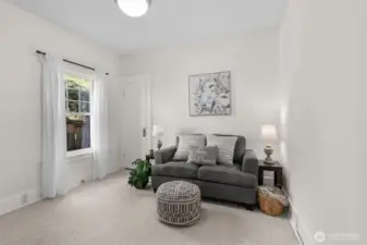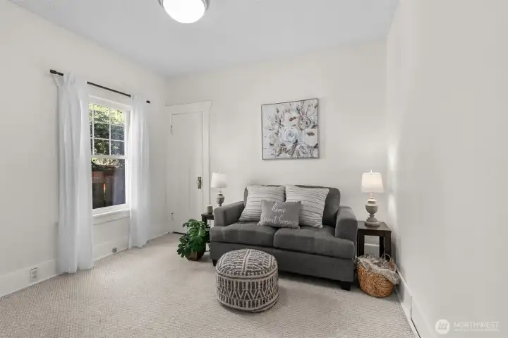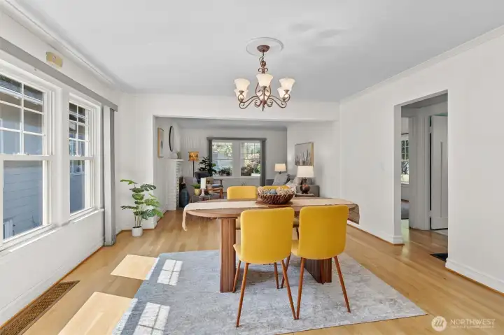 Charming Wallingford Craftsman on quiet street, refinished hardwoods, cozy gas fireplace. New electrical throughout and newer roof provide peace of mind. This home is a solid, basic value to buy into this sought-after neighborhood. Spacious living, dining rooms, bright kitchen. A back office/sunroom with garden views. Main floor has primary bed, ¾ bath and bonus room; upstairs are 2 bedrooms and ½ bath. Enjoy the covered front porch, backyard offers newer trex style deck, hot tub, lush yard, garden. Basement could be finished for more living space, or use as is for workshop, crafts, laundry, storage. Driveway - add EV charger? Stanford Elem Geo Zone. Quick access I-5, 520, Eastside. Recent appraisal at $1,037,000 gives you instant equity.