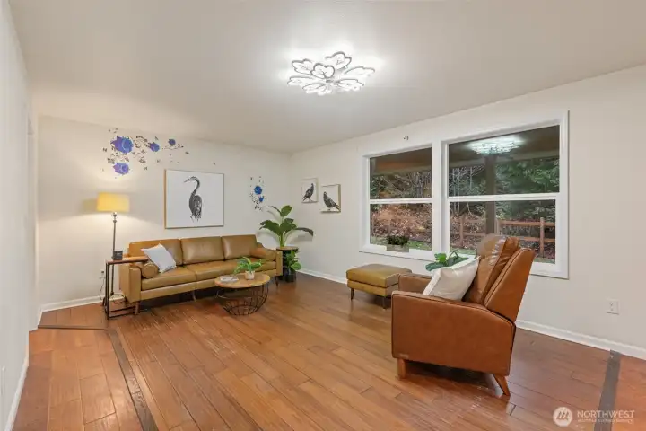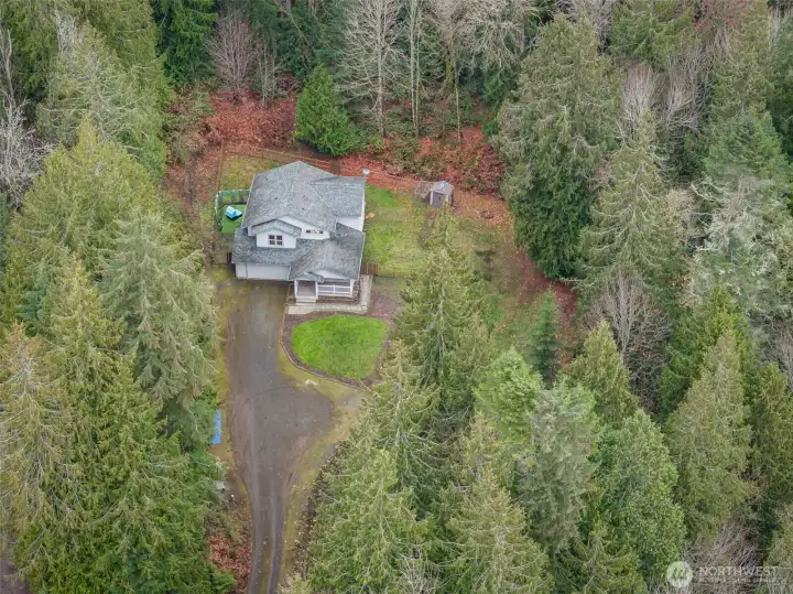 2 private acres at the end of a quiet road, This 2,472 sq ft 5 bdrm 2.5bath home is wrapped in mature forest, fall color & true privacy. Room for everyone, warm gathering spaces, it’s made for family, memories & room to grow. A long private driveway leads to ample parking, a 2-car garage & a classic front & back porch. Inside, plank floors, big windows & an open layout invite the outdoors in. The kitchen is the heart of the home! Quality cabinetry, generous counters & a large island. The fenced backyard, covered patio, RV space & room for pets make it a perfect retreat. The primary suite features an attached bath & walk-in closet. Minutes to trails, Ediz Hook, downtown Port Angeles & Olympic National Park. & Just a 15 minute drive to Sequim