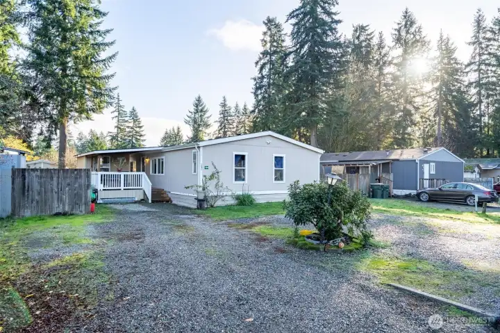 A beautifully updated 1,232 sq ft home in the desirable all-ages Melody Pines Estates community. This move-in-ready property offering modern comfort, style in an excellent Olympia location. An open layout featuring a vaulted ceiling that spans the kitchen, dining, & living room, creating a bright & spacious atmosphere. Nearly every surface has been improved, including new waterproof vinyl plank flooring, fresh interior paint, & new double-pane vinyl windows throughout. The kitchen boasts brand-new cabinets, countertops perfect for meal prep and entertaining. Both bathrooms have been beautifully remodeled with new tile, updated flooring, and stylish vanities. Generously sized bedrooms with large closet