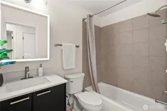 Just completed, Ridge Series plan has one-of-a-kind additional 630sqft unfinished basement area perfect for storage, hobby workshop, or future expansion. Designer kitchen and finishes, balcony, double height living room, large primary suites, gas fireplaces, radiant heat, full sized laundry room, and upper floor family room loft. Located in highly desirable North Creek minutes to 405 with easy drive to Bellevue/Kirkland/Redmond that avoids much of the worst north end traffic. Full condominium conversion in 2025 by trusted and respected local builder for over 42 years, WestTier Homes. Fitzgerald Commons has special mortgage rates starting at 3.99%* for qualifying models! FHA/VA eligible. Builder warranty included. Site Registration Policy