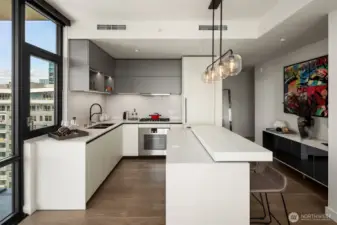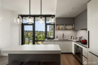 Nestled in the heart of downtown Bellevue, this brand new luxury condo offers a refined two-bedroom, two-bath retreat crafted for modern living. Smart and functional, the residence boasts top of the line fixtures from world renowned brands, blending elegance with practicality. Thoughtfully crafted interiors feature harmonious tones, clean lines and discreet textures, creating a balanced environment that nurtures well-being. Beyond your private sanctuary, enjoy amenities including a fitness room, stylish lounge and pet area. The building's modern lobby welcomes you with dramatic lighting, a living wall and a striking fireplace - signaling your arrival at a place where luxury and wellness converge seamlessly. Images are representative.