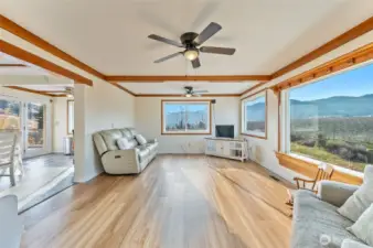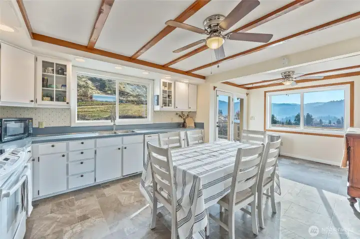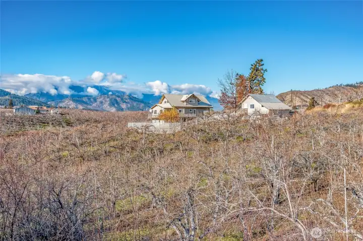 Perched on a sunny hillside just outside Leavenworth, this charming 4-bedroom, 3-bath home captures sweeping views of the Cascade Mountains in every direction. Classic farmhouse warmth blends with modern comfort throughout. Soak in the peaceful setting from the deck overlooking the valley, or unwind in the spacious yard surrounded by nature. A private pear orchard brings a touch of country living right to your doorstep. With a detached two-car garage/shop and space for animals or projects, this property offers an exceptional slice of mountain serenity.