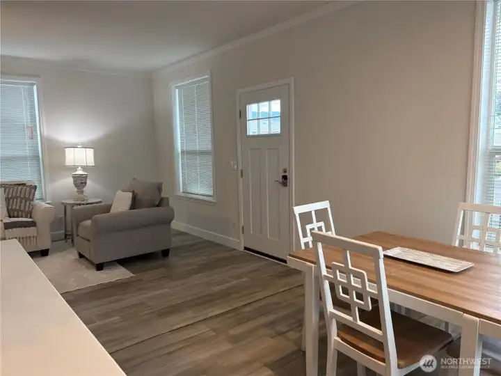 Experience quality living in Lavender Meadows, a private, pet friendly, 55+ community located in beautiful downtown Sequim. Residents enjoy miles of level interior sidewalks, pickle ball courts, horseshoe pits, bocce ball, pocket parks, dog parks, and a clubhouse. Beautifully landscaped with irrigation and a 2-car garage. Floor plan: The Explorer-Come see why this home is one of our most popular plans. Open lay out, spacious kitchen with Corian island, stained wood cabinets & built in buffet. Spacious living room has vaulted ceilings, vinyl plank flooring, & ceiling fan. Home is heat-pump compatible.Current community fee is $740/mo. which includes several amenities as stated above. Utilities paid separately.
