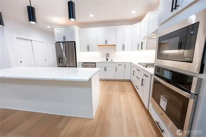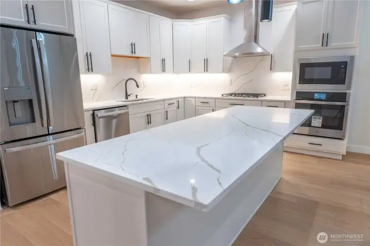 New 2025 Construction in the gated community in Semiahmoo only 5 minute walk to the beach. This beautifully built 3-bed, 2-bath rambler offers vaulted ceilings, well-designed layout with high-end finishes throughout. Kitchen features quartz countertops, full-height backsplash, soft-close cabinetry, and premium appliances. Living area is highlighted by a dramatic floor-to-ceiling stone fireplace. Quality construction includes a 50 yr Presidential roof, solar panels, life time Andersen windows, 8-ft front door & slider, and an EV-ready garage with tempered-glass door. Enjoy refined coastal living just minutes from the golf course, marina, beaches, and walking trails. Amenities include access to Semiamhoo Resort and golf club with membership.