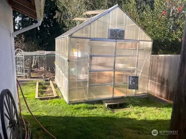 This charming Mid-entry style home with potential MIL capabilities is in the desirable 3 Lakes neighborhood on a dead-end street! Set on a lg level lot w. a ton of off street and RV parking, it features 3 Bedrooms, and 1.75 updated baths. The upper level has a spacious liv rm w/ a cheery kit and dining area with slider leading to a lg covered deck and 2 br. The lower level has a lg fam room w/ pellet stove, additional cabinets w/ cook top stove and sink (MIL?) and a 3/4bath/laundry rm. with heated tile and the 3rd bedroom/office. The newly fenced back Yd. features an enclosed wood paneled Hot tub spa, a 30x20 Quonset building for a garage or shop, a lg. green house, garden space, chicken coop and backs to a forested greenbelt with creek.