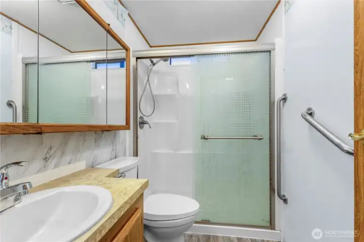 Discover a refreshed, easy-living home in the Nylandia 55+ community with one of the lowest space rents around. Enjoy fresh carpet, newer exterior paint, and an open layout filled with natural light. The remodeled kitchen features updated flooring, plumbing, & cabinetry, & all appliances included. You'll find two bedrooms--including a primary with walk-in closet, a refreshed 3/4 bath with low step shower & a separate laundry room. On a corner lot with covered carport parking, attached storage, & ramp access to front entry. The lot backs to open area for a spacious feel & is convenient to guest parking. This cozy home offers nearby access to shopping, dining, I-5, the hospital, & public transit. One pet allowed with restrictions.