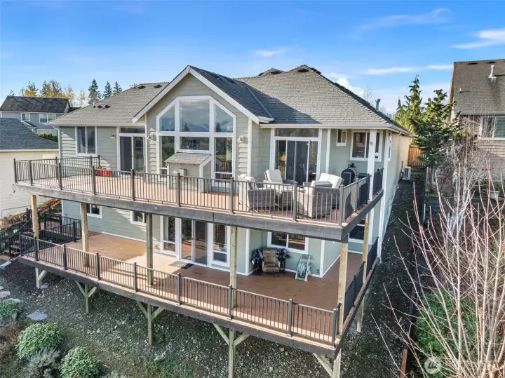 Where comfort, style, & views converge! This beautifully designed 2716 sq foot 3 bed 2.5 bath 1 story w/full daylight basement is nestled in the desirable Springhaven community of Bonney Lake. Main level welcomes you w/an open living room anchored by clerestory windows & cozy gas fireplace. Step through sliding door onto the deck & soak in stunning views of Mt Rainier, an unforgettable backdrop! Primary bedroom located on main level w/5-piece ensuite +huge walk-in closet. Laundry rm & garage also on main level! Downstairs offers lower deck, huge rec room complete w/wet bar +mini-fridge, 2 bedrooms, 1 w/access door to full bath, perfect for guests! New furnace +A/C in 2024! 3 car garage+ behind gate RV/ boat parking. This home IS a rare gem!