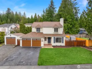 Located on a quiet Sammamish street within the award-winning Lake WA Schools, this well maintained home offers open layout for everyday living and entertaining. Updated kitchen features sleek cabinetry, ample counter space, and high-end Thermador wall oven and cooktop. Living areas flow easily to the outdoors, where a fully fenced backyard creates an entertainer’s dream: a covered patio for year-round gatherings, cozy fire pit, hot tub, outdoor TV, dog run, and extra storage sheds. Rare third car garage opens on both sides for added convenience, ideal for projects or extra parking. Enjoy A/C in the summer months and generator wiring through storm season. Located near parks, shopping, and dining. Stylish and move-in ready!