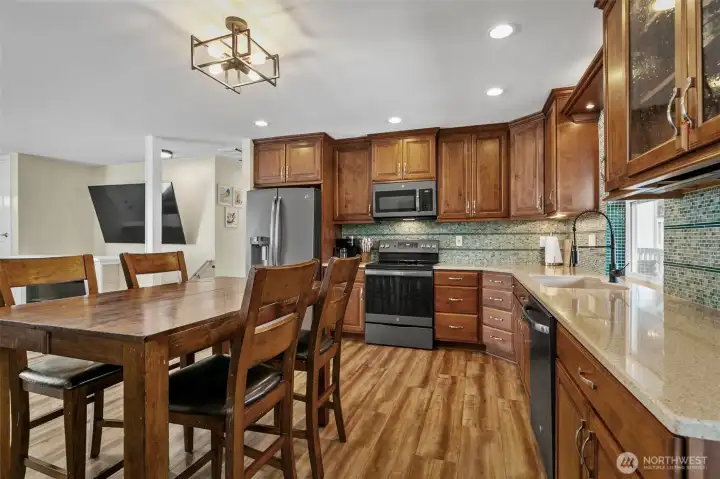 Great daylight basement home in Selah with loads of updates.On the main level you'll find an open floor plan where the great room flows perfectly into to tastefully remodeled kitchen.The kitchen features custom cabinets, quartz countertops, and glass backsplash.Also on the main level is the well appointed primary suite.This oversized retreat boasts double walk-in closets and luxury bathroom with double door entry, his and hers sinks, soaking tub and walk in tiled shower.A guest bedroom and bathroom along with ample sized laundry room round out the main level.The thoughtfully designed, fully finished lower level offers a full sized rec room, huge guest bedroom, a full bathroom, and small workshop area.The finished 2 car garage and RV parking