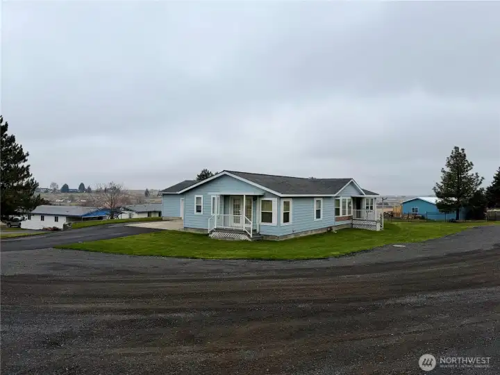 Offering 1,836 sf of comfortable living, this bright 3-bedroom, 2-bath home sits on an oversized corner lot just steps from the golf course. Large windows bring in abundant light, highlighting an inviting layout designed for everyday ease. The two-car attached garage adds convenience, while auto sprinklers keep the yard low-maintenance and ready for outdoor enjoyment. With Lake Roosevelt only a short drive away, this property blends recreation, relaxation, and spacious living in a highly desirable setting. The expansive corner lot offers room for gardening, play, or future projects, while the peaceful surroundings enhance its appeal. Whether as a full-time residence or a getaway, this home delivers comfort, convenience, and welcoming feel.