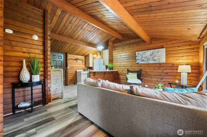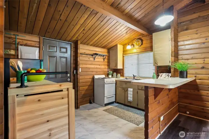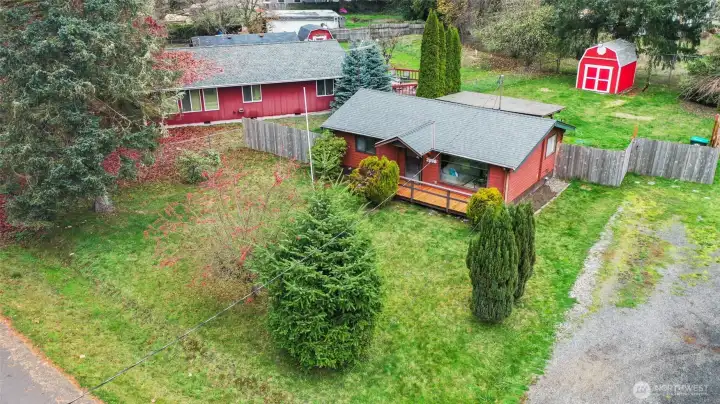 Adorable 2-bedroom cabin on .21-acre lot in the Scott Lake Community, just minutes south of Tumwater. Cozy living area and efficient kitchen with apartment-size appliances, yet room for full-size if desired. Updated bathroom, newer vapor barrier, and roof approx. 9 years old. Enjoy the spacious fenced backyard with a pear tree. Neighborhood amenities include lake access for swimming, fishing, and water skiing, plus a clubhouse, golf course/pro shop, and community events. Easy access to I-5, shopping, and a nearby market/gas station.