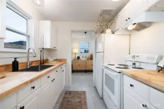 Darling 2 bed,1 bath home in a desirable area of Mount Vernon. Built in 1949, this fully remodeled charmer sits on a quiet street near Hilcrest park. This cottage boasts real hardwood floor lovingly restored, new roof, updated kitchen with classic butcher block counters, remodeled bathroom with new tile shower and new interior & exterior paint. Classic built-ins provide storage and add to historic charm. Corner windows flood the home with plenty of natural light and a mudroom gives access to a perfect size backyard along with detached garage and ample parking. At +/- 752 sq ft, this quaint home is cozy with efficient spaces is close proximity to Skagit Regional Hospital, downtown Mount Vernon and more.