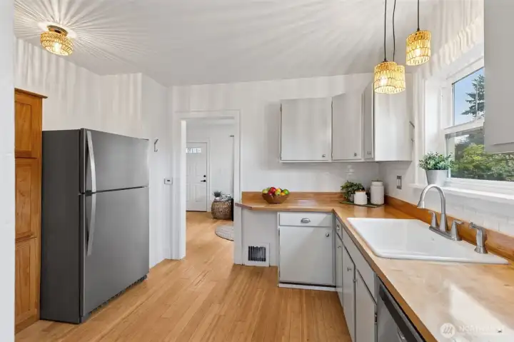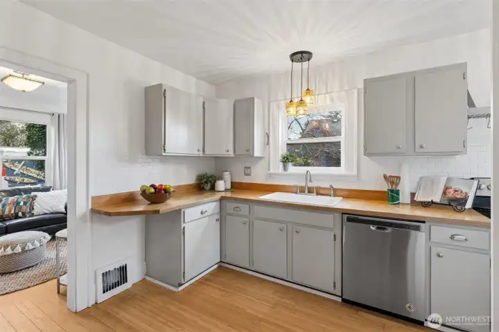 Westside TURN-KEY TREASURE! This cutie won't last so finish your turkey and GO! Not only is it super charming: newly tiled bathroom, bamboo floors, butcher block counters, upgraded light fixtures; the bones are good and major systems have all been upgraded and won't require work for years! Roof, furnace, water heater, windows, elec panel, front/back doors, sewer line sleeve.... ALL have been done for you! Square footage breakdown: 1064 SF above ground and 728 in VERY usable dry basement. Extra room/office in lower level plus Marmoleum floor tiles throughout allows for den/flex/hangout space! Don't miss the easement on north side of the house with the shed. 1/2 that driveway + shed goes with this house--see access gate to back yard.