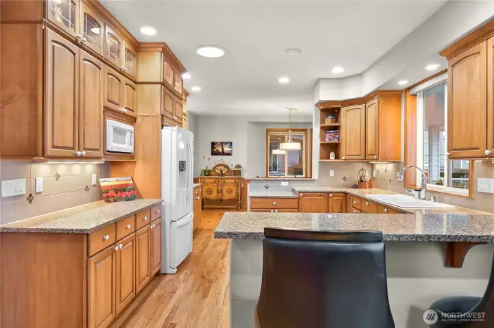 Capture Big Lake views from this spacious custom home set on a private 0.42-acre lot. Designed for comfortable living and effortless entertaining, the home offers generous indoor and outdoor spaces, warm natural light, and an inviting flow throughout. The main level provides open gathering areas and a primary suite positioned to take in the scenery. Upstairs bath & stairwell bring in additional lighting. Step outside to a full-length Trex deck overlooking tranquil landscaping, a waterfall and pond, and peaceful garden spaces. Heated 3 car garage, Central Vac with garage connection, 2018 water heater, newer kitchen appliances with extended warranties, solar tubes in kitchen natural gas line for BBQ hook up. wired for stereo & security system