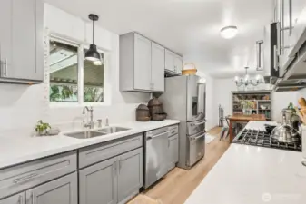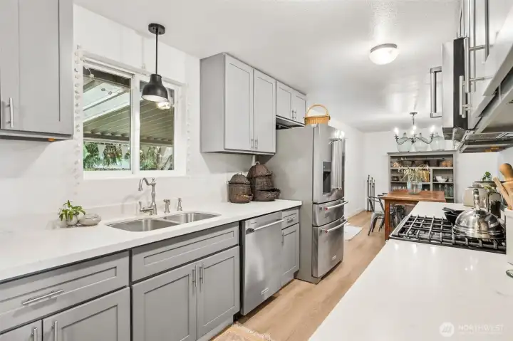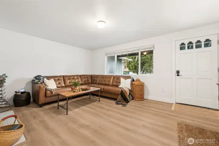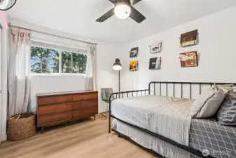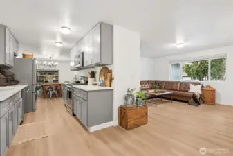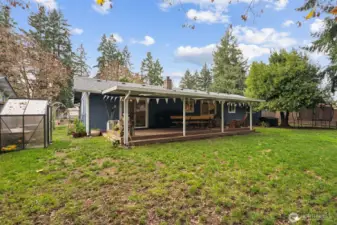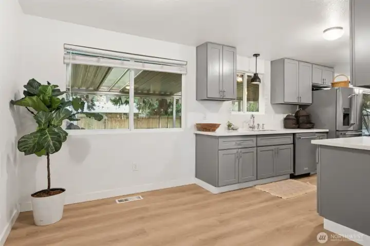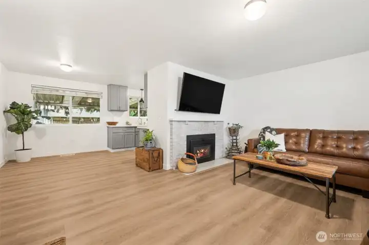 Beautifully updated 3 bed, 1.75 bath rambler where comfort and style meet. Enjoy peace of mind with a newer roof, gutters, windows, interior paint, and brand-new flooring throughout. The kitchen features quartz countertops, updated KitchenAid appliances, and modern lighting that elevates the entire home. The easy, flowing layout offers warm, inviting rooms and a cozy fireplace perfect for everyday living. Step outside to a spacious lot with a fully fenced backyard, covered deck, and fire pit area, ideal for summer BBQs, gatherings, and entertaining. The lovingly nurtured garden beds add a sense of calm and beauty to the outdoor space. Conveniently located near shopping, dining, and JBLM. Move in, unpack, and enjoy—this is a must-see!