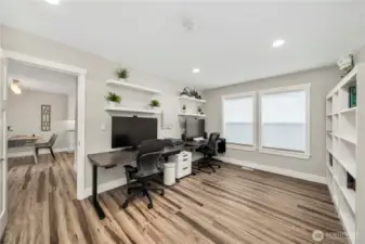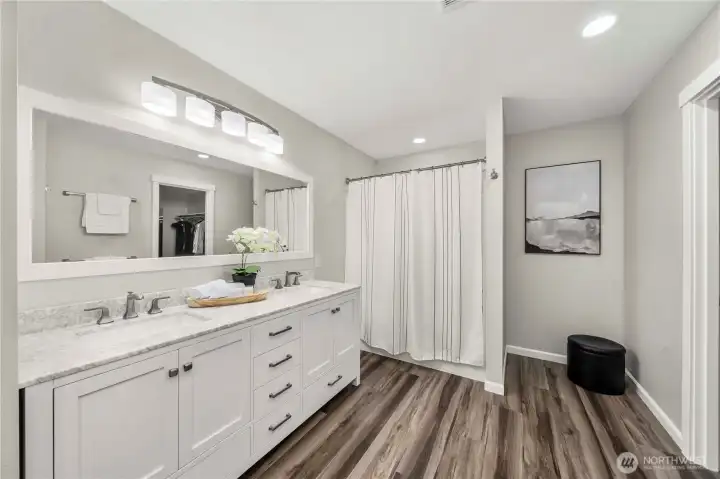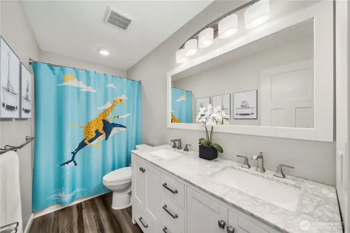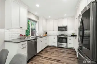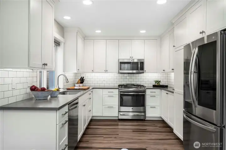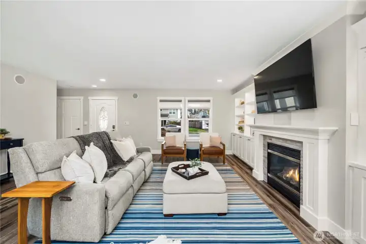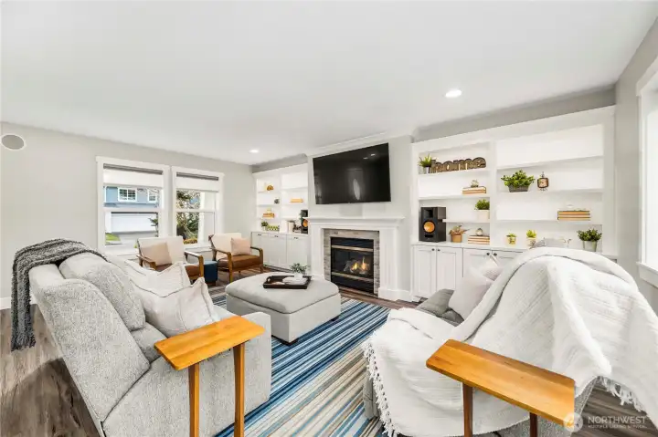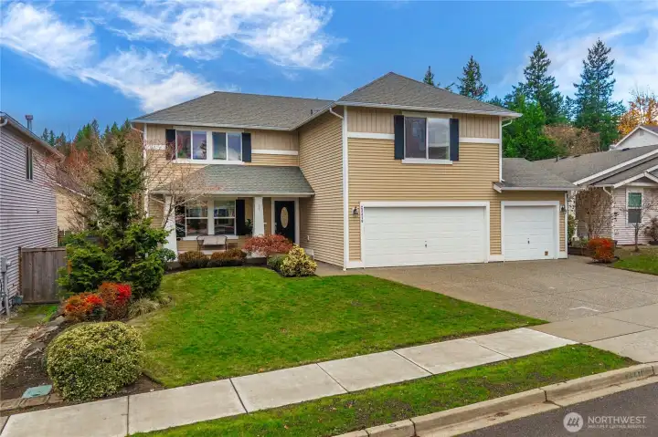Welcome home to Katesridge! This well-kept retreat offers room to live and grow with 4 bedrooms, a bonus room, and 3 full baths, including a main-floor bed and bath. Great natural light keeps the main level bright, while the living room’s cozy gas fireplace and custom built-ins, speaker system and smart lighting make it a true gathering spot. The updated kitchen shines with quartz countertops and an easy flow to the private backyard. Updated baths and LVP flooring add everyday comfort. Outside, enjoy a fully fenced yard, raised beds, Wi-Fi sprinklers, dog run, and an extended patio with firepit area, all tucked on a quiet cul-de-sac. EV-ready 3-car garage. Quick trail access to Lake Wilderness, with parks, schools, and amenities steps away.