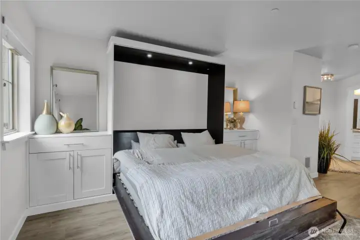 Live in the heart of Capitol Hill! This fully renovated condo features a modern kitchen with granite counters and stainless steel appliances, plus fresh paint and trim throughout. The custom entertainment center with a Murphy bed creates the ultimate home office and efficient living space. Large updated bathroom with King sized murphy bed included! Amazing views from your private balcony! Enjoy panoramic skyline and mountain views from the community rooftop deck. Located at the Onyx, amenities include secure parking, a fitness center, and a media room. This unit proudly comes with one of the best parking spots in the entire building. It's a reserved and covered parking spot. Additionally, the HOA fees at $328 a month for this condo are extremely reasonable compared to other nearby condos. Cal Anderson Park is your backyard, with top-rated dining, nightlife, and shopping just steps away. A walker’s paradise, this home offers easy car-free commuting near the Light Rail Station (0.4 miles) and major bus lines.