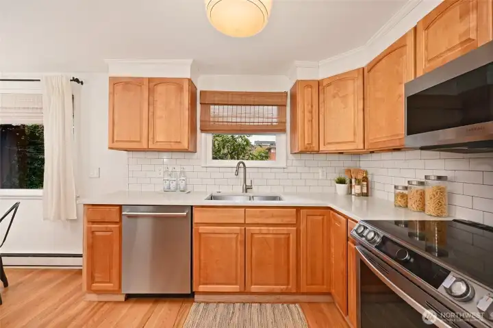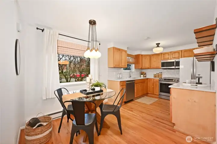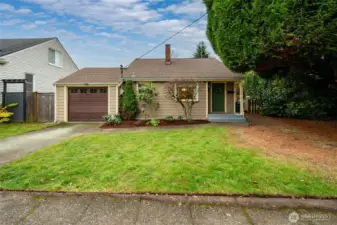 Classic 1950 "Lovell" home featuring 4 bedrooms & 1 bath, ideally located close to shops, restaurants & transit. This well-cared-for home blends mid-century charm with thoughtful updates, an updated, open kitchen, fresh paint & gleaming hardwood floors. The main level offers bright living spaces & two comfortable bedrooms. Head upstairs to the cozy hideaway finished in warm knotty pine (classic design element of E. Lovell), plus a perfect retreat, bedroom, (may be non-conforming) creative space, or home office. The convenient attached garage leads to a new trex deck & delightful fully fenced backyard. Recently refreshed with new paint, this home is super cute, move-in ready & a piece of Seattle's architectural history.