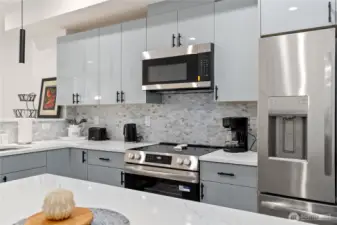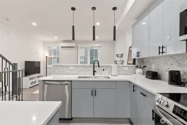 Brand-new 3-level condo in Central Tacoma featuring two primary bedrooms with private baths and an additional guest powder room. Modern, light-filled living area with large windows and private balcony. Stylish kitchen includes flat-panel gloss cabinets, quartz countertops, tile backsplash, island, and extended bar seating. Home comes complete with washer/dryer, window blinds throughout, metal stair railings, and generous closet space. Spacious 2-car tandem garage with utility room provides extra storage and convenience. Fantastic location close to downtown Tacoma, hospitals, parks, shopping, and freeway access. Low-maintenance, contemporary living at its best! Builder 1 year warranty