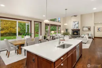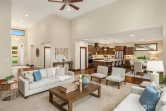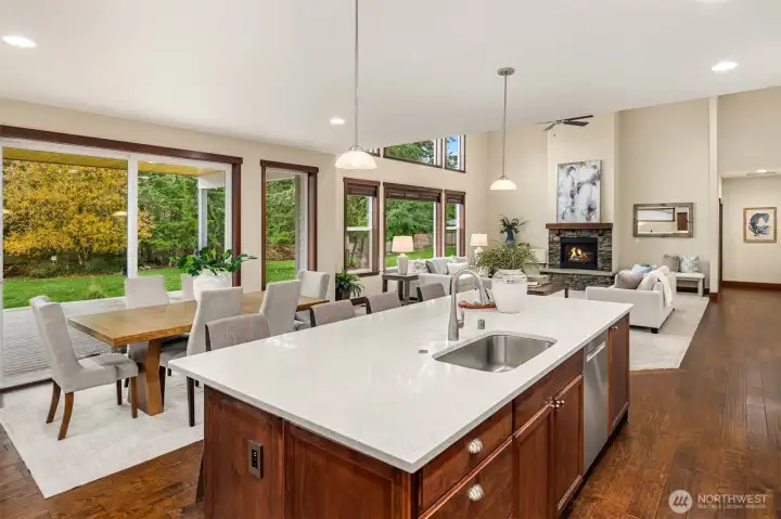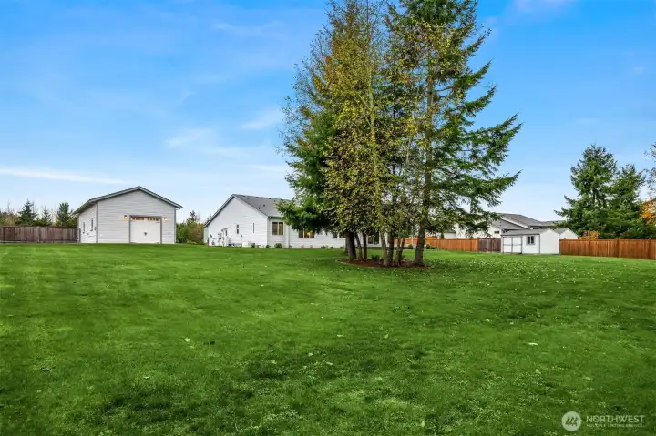 Welcome to serene country living adorned in modern comfort in the Wildridge Community of Stanwood. Live large in this thoughtfully designed rambler with soaring 15' ceilings and large picture windows though out to amplify natural light. Entertain effortlessly in the open great room and chef’s kitchen featuring a large island, walk-in pantry and a professional BlueStar cooktop. Two bedrooms plus den is found on one side of the home while the a peaceful primary suite has it's own side of the home. 3 car attached garage plus detached, fully finished garage with heat & AC with attached shop, plus an RV pad with full hookups (electric, water, sewer dump) that fits a 45’ RV! All within minutes to shopping, entertainment and outdoor activities.