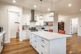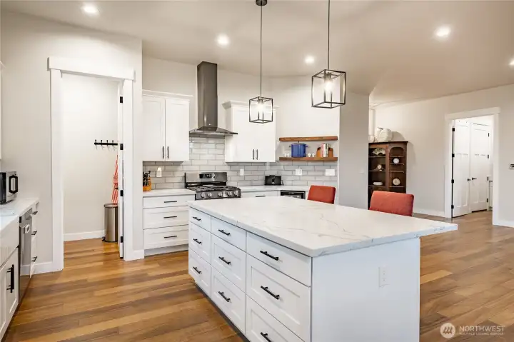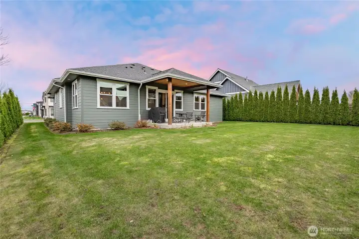 Welcome home! Located in pristine Lynden, this lovely single level home is quality construction from top to bottom. The elegant kitchen has abundant soft closed cabinetry, quartz counter tops, large island, black SS appliances, beverage cooler, tiled backsplash & walk-in butler's pantry. The floorplan is open between the kitchen, living & dining room, warmed by a gas fireplace. Many windows bring in lots of natural light & outdoor beauty. The primary has a huge walk-in closet, spacious bathroom w/a tub & walk-in tiled shower. Other items include AC, washer & dryer, under eve lighting, 10’ ceilings w/ 8’ doors throughout, tankless water heater, outdoor sprinklers & large, covered patio. Close to schools. This home is an entertainers' dream!