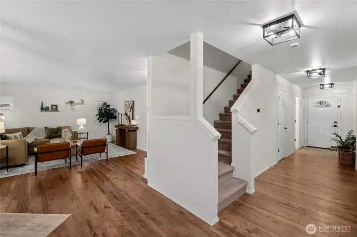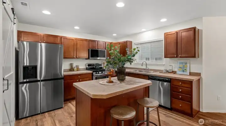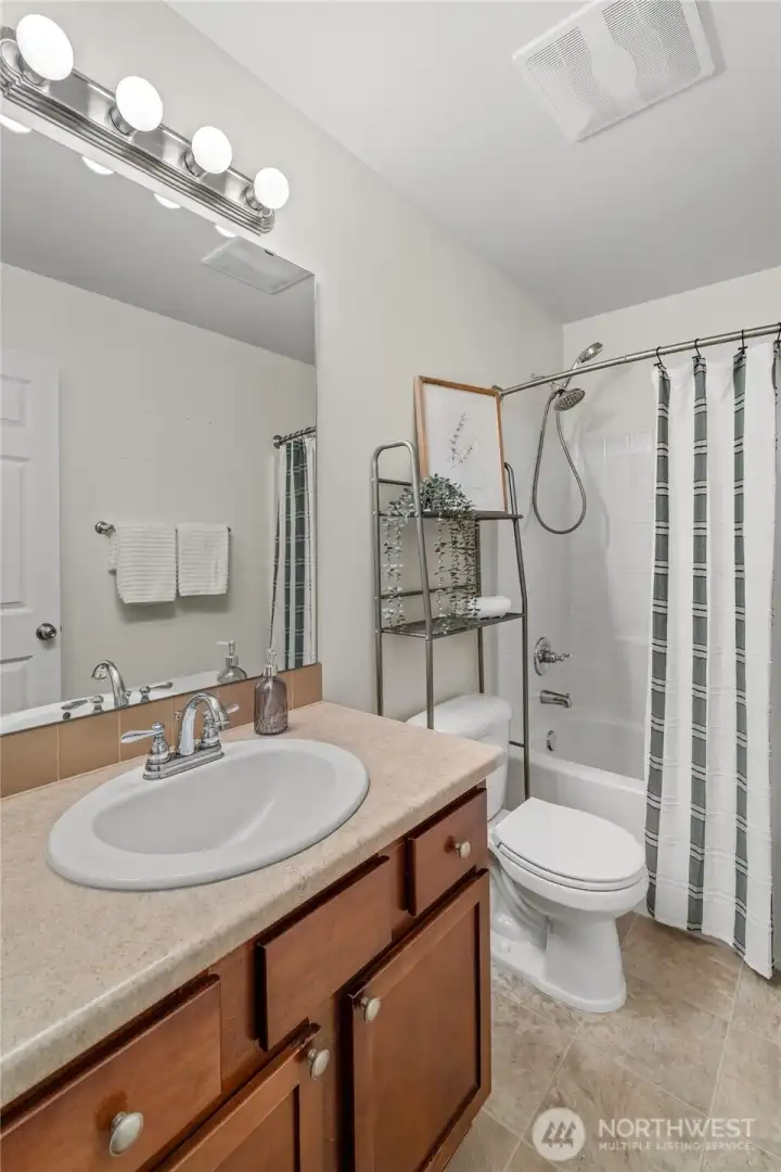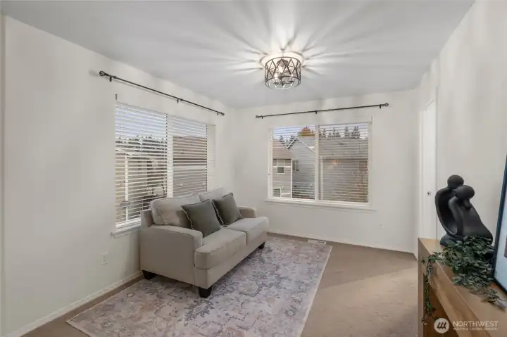 Welcome to this spacious 4 bedroom, 2.5 bathroom, home located near highly desirable Tumwater schools. The open layout offers flexibility, with a great room and large dining area on the main floor. You'll find a main floor 4th bed/office & walk-in closet and 1/2 bath. The generous kitchen features stainless steel appliances, a large island, extensive storage, ceramic tile counters, and a walk-in pantry. Upstairs, you’ll find an inviting loft/bonus area that can serve as an office, playroom or more living area, two additional bedrooms, a full bath, and a well-placed utility room with a sink. The oversized primary suite includes a 5-piece bath and a large walk-in closet for exceptional comfort. Two doors down from the community park!