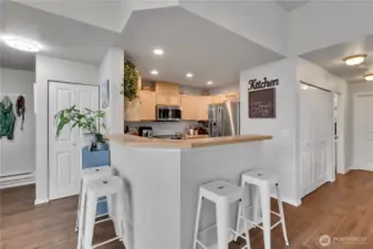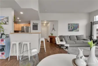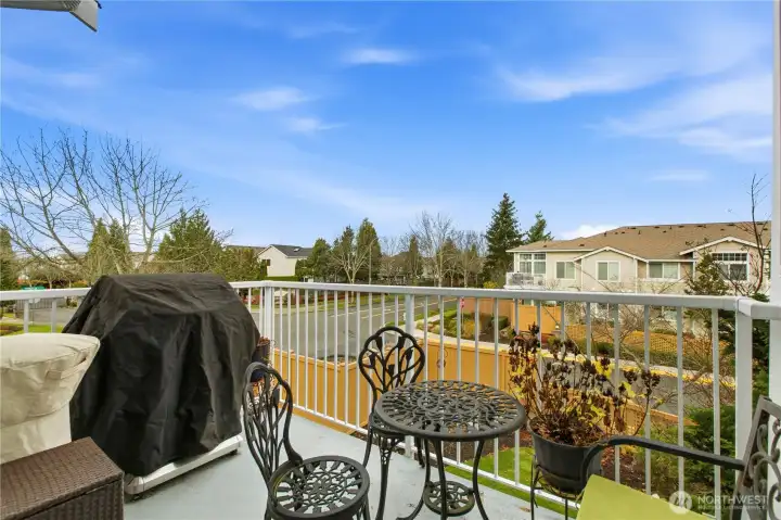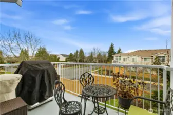 Welcome home to Carrara at Lakeland~ where bright, comfortable living meets a highly desirable community.This top-floor end unit is filled w/natural light & offers a welcoming, open layout. The spacious great room extends to a private deck—ideal for relaxing or enjoying your morning coffee. Fresh, neutral paint throughout provides a clean and modern feel from the moment you step inside. LVP flooring make cleaning a breeze. Unwind by the cozy fireplace or enjoy cooking in the open kitchen featuring maple cabinetry, ample counter space, and new appliances. The primary suite feels spacious w/vaulted ceilings, a walk-in closet, & a private bath complete w/a soaking tub & dual sinks. Close to schools, shopping & easy access to HWY167