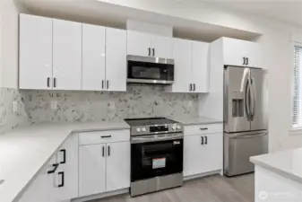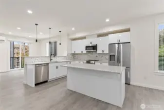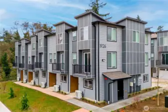 Brand-new 3-level condo in Central Tacoma featuring 3 bedrooms and 2.5 baths, including a spacious primary suite. Modern, light-filled living area with large windows and private balcony. Stylish kitchen includes flat-panel gloss cabinets, quartz countertops, tile backsplash, island, and extended bar seating. Home comes complete with washer/dryer, window blinds throughout, metal stair railings, and generous closet space. Spacious 2-car tandem garage with utility room provides extra storage and convenience. Fantastic location close to downtown Tacoma, hospitals, parks, shopping, and freeway access. Low-maintenance, contemporary living at its best! Builder 1 year warranty.