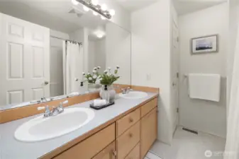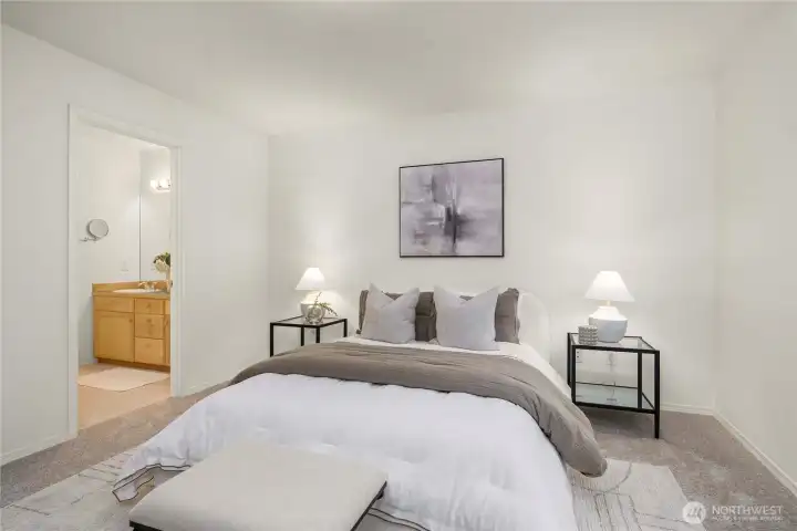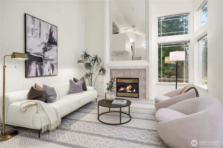 This beautifully refreshed Timbers at North Creek home offers a bright welcoming layout. You'll be captivated by its soaring ceilings and expansive windows filling every corner with natural light. Fresh paint and brand-new flooring lend a graceful glow to the bright, open-concept design, where living, dining, and rest blend effortlessly. The main-floor primary suite feels like a retreat, with ensuite and walk-in creating a space made to relax. Upstairs, two additional bedrooms provide space to dream, work, or unwind. Step into the private backyard and find yourself embraced by lush greenery, quiet and calming. 2 car garage and an ideal Thrashers Corner location surrounded by parks, shops, and easy commuter access, makes this home a dream.