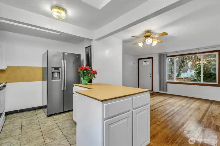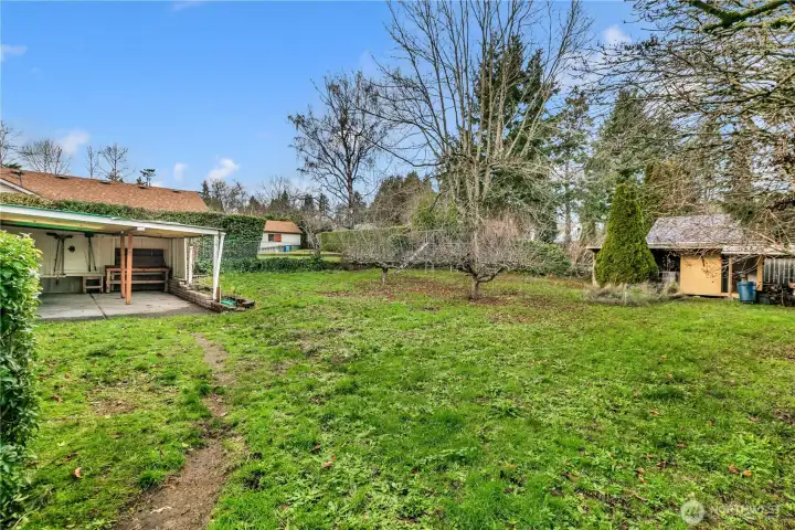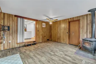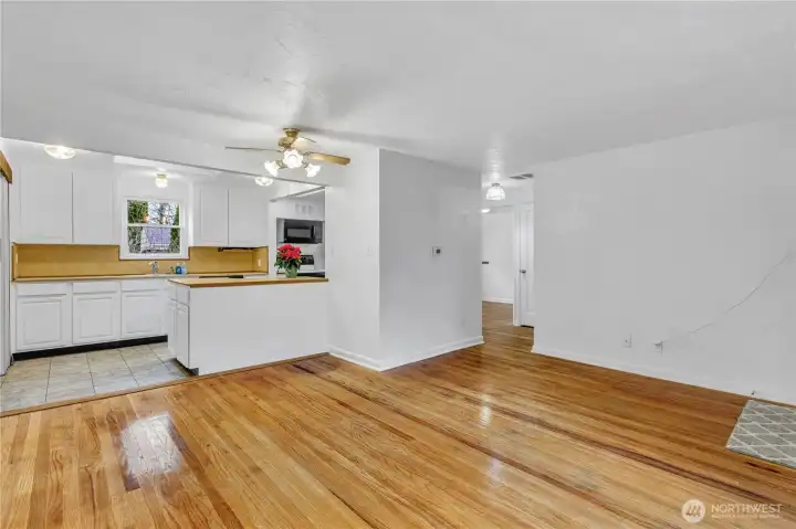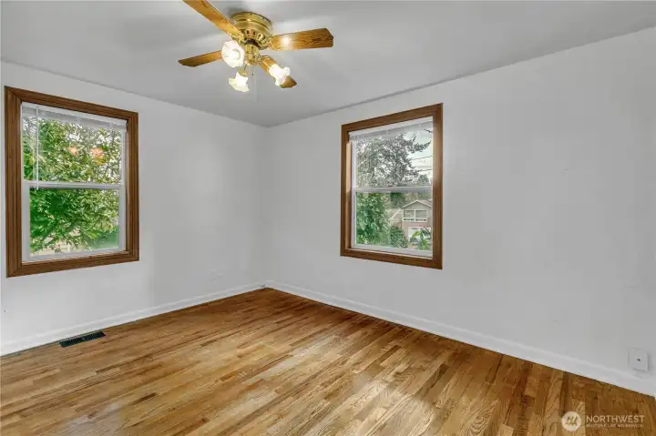 Charming and well-maintained home on large lot. Freshly painted throughout with refinished hardwood floors throughout main living area and bedrooms, updated bathroom and cozy rec room off the kitchen with new flooring, freestanding wood burning stove and access to covered back patio and spacious back yard with outbuilding. Quiet neighborhood street yet minutes to I-5, SeaTac airport and light rail plus close to shopping, dining and entertainment. This home and location is full of potential.