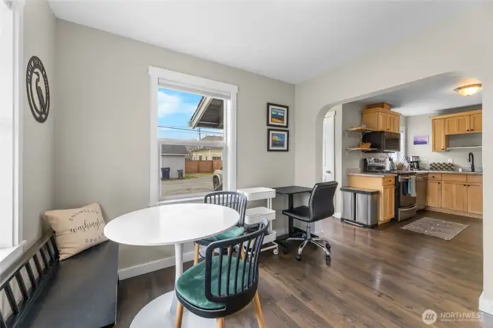 Welcome Home to this Charming Craftsman Bungalow in the Heart of Downtown Enumclaw! This beautifully updated 650 sq.ft. home offers 2 bedrooms, 1 bathroom, and a cozy living room filled with natural light. The stylish kitchen features granite countertops, stainless steel appliances, and a convenient dining area—perfect for daily living or entertaining. Step outside to a fully fenced yard with mature landscaping, creating a private and inviting outdoor space. Its prime location puts you just moments from restaurants, shops, parks, schools, and local amenities. Enjoy quick access to the Enumclaw Golf Course, Mud Mountain Dam Park, Mt. Peak hiking trails, and Crystal Mountain. Don’t miss your chance to own a charming piece of Enumclaw history!