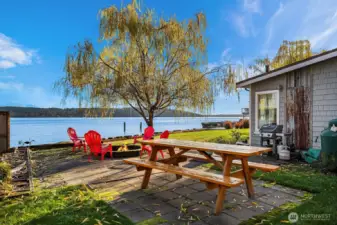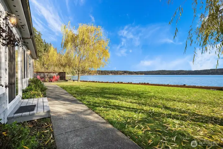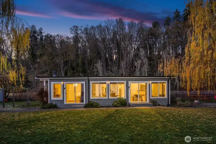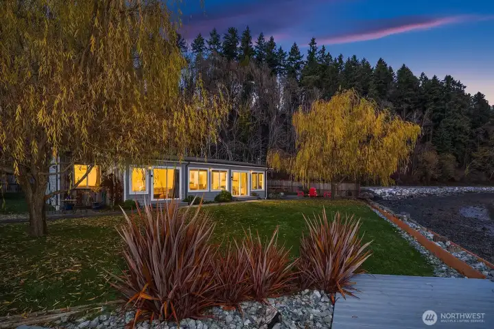 Zen waterfront living in this charming Vashon Island home with 3 beds and 1.5 baths on 2 spacious lots. Boasting 150 feet of low-bank shoreline, with sweeping views of the water and Mt. Rainier, this property includes two tax parcels, a boat launch, and a registered mooring buoy. Inside, a wall of windows frames the stunning scenery while the cozy interior blends charm with modern comfort. Outside, relax by the beachside fire pit or on the lawn that stretches to a deck at the water’s edge. Proven short-term rental success adds investment appeal, and most furnishings may remain (191 reviews!). Located near Burton shops, parks, this home combines serene surroundings with everyday ease. 6-min to S ferry, 19-min to N ferry. 10 min to town.