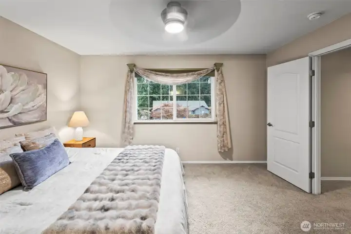 Show-stopper kitchen and updated baths set this home apart! Gleaming kitchen features white cabinetry to the ceiling, quartz counters and walk-in pantry. Spacious family room with airy vaulted ceiling flows into dining area and kitchen for a truly functional layout. Step outside onto the two-level composite deck overlooking a greenbelt. Fully fenced backyard is large and ready for pups and play. Upstairs, you'll find three large bedrooms, and updated baths with crisp tile, custom vanities and quartz counters. New tankless water heater, new AC compressor, attached 2-car garage, and additional parking. Peaceful neighborhood close to bases, shopping, hospital, PSNS, and downtown Bremerton. This yard blooms in spring!