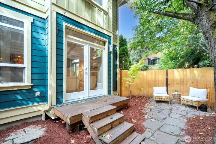 Welcome to your move-in-ready sanctuary just two blocks off Broadway on Capitol Hill. This 2-bed, 2.5-bath townhome has been beautifully transformed — freshly painted walls (inside and out), doors, baseboards, and handrails — all anchored by durable, low-maintenance LVP flooring throughout. Outside, step into your private oasis with a brand-new fence enclosing a well-maintained backyard, perfect for relaxing or entertaining.Every detail is designer-inspired: tiled baths, a striking slate-wrapped gas fireplace with a warm wood mantel, honed granite counters in the kitchen, and a slate tile entry that makes a bold first impression. You’ll also enjoy the rare downtown Seattle benefit of an attached garage and best of all: No HOA!