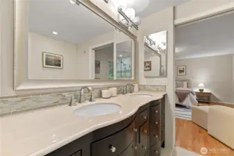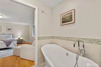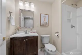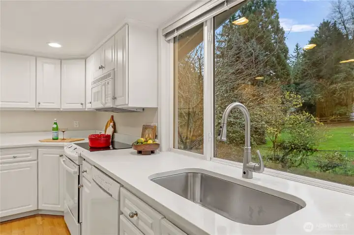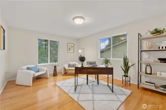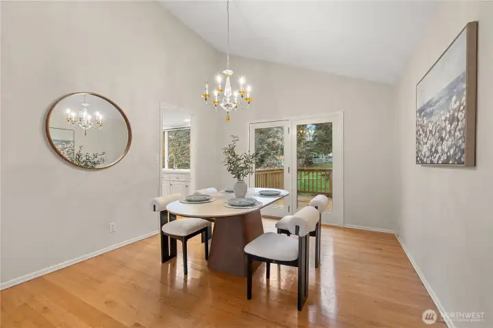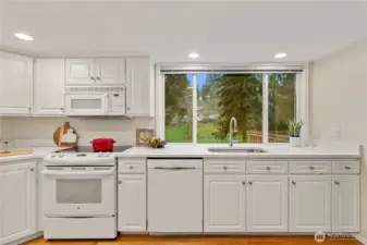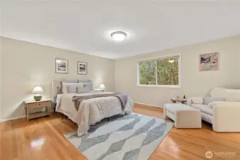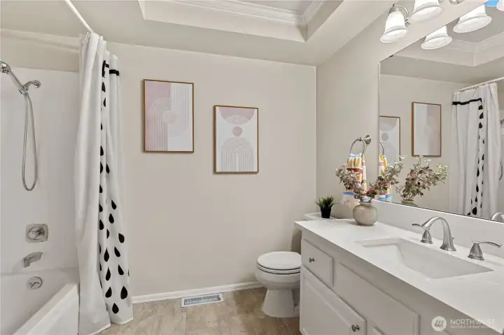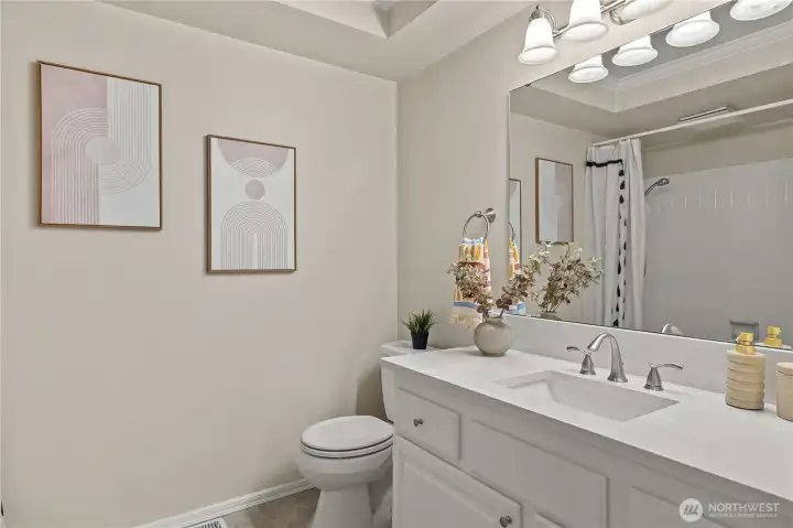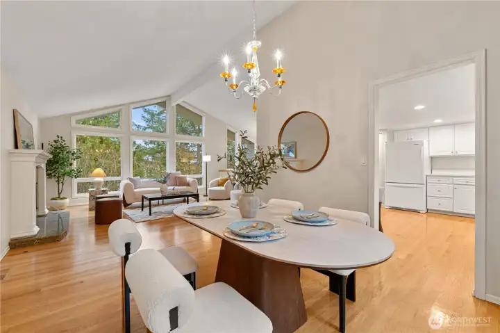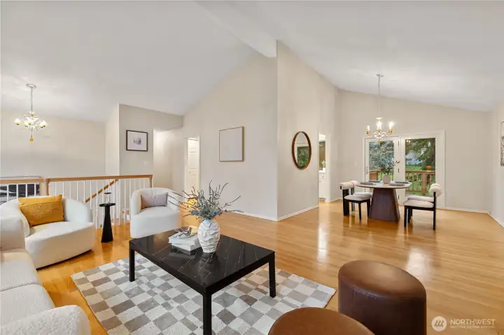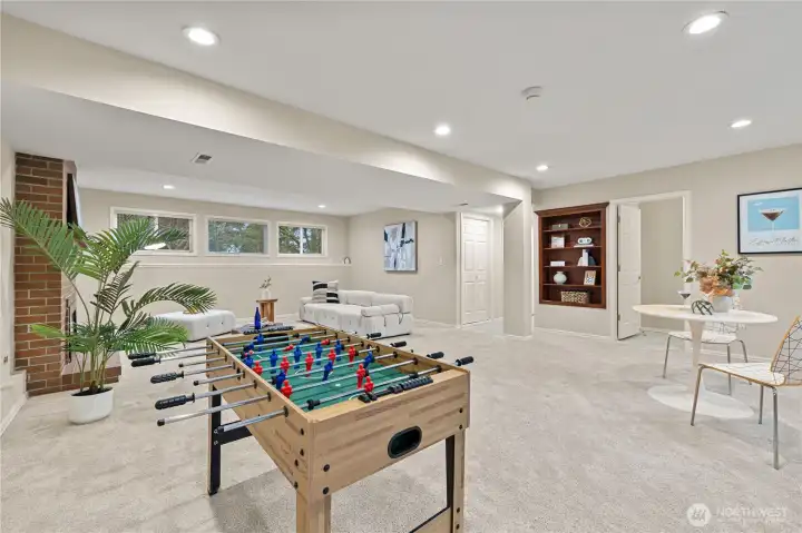 Moments from Microsoft’s main campus, this home features hardwood floors, vaulted ceilings, and two gas fireplaces. Kitchen and bathrooms update, and new roof were completed between 2019 & 2020. The private landscaped backyard includes a deck, large patio, and hot tub with privacy screen. Inside, enjoy a bright white kitchen with quartz counters, updated hall bath with a solar tube, and a spacious primary suite with a freestanding tub, frameless shower and dual vanity. Downstairs, you'll find a huge rec room with a gas fireplace, ¾ bath and laundry room. An extra-deep garage provides plenty of storage or workshop space. A/C will keep you cool in the summer.
