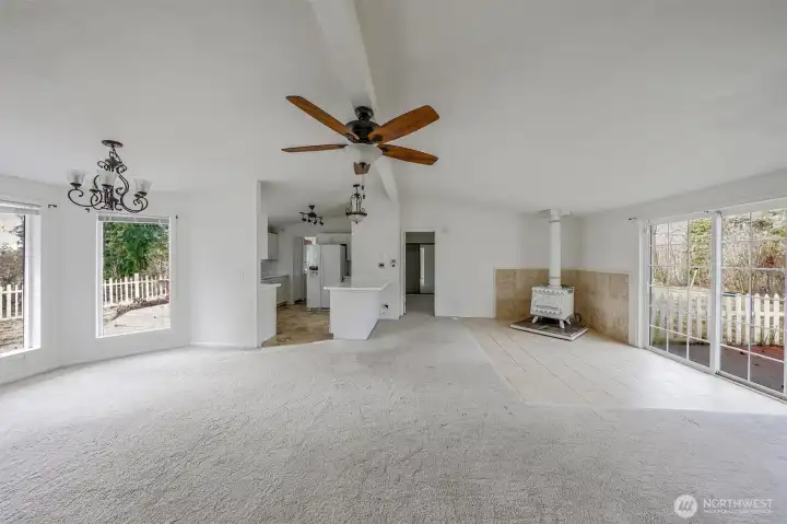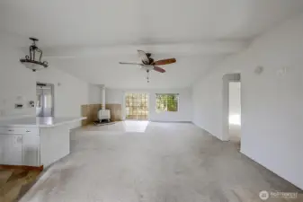 Did someone say, "they were looking for an affordable home" with more than a tiny lot. This is what they have asked about. Over 1300 square feet that features open space of the living and dining area with a wood stove to make it comfortable during cold weather. There is also a detached large two-car garage with plenty of workspace and a covered walkway to the home. All this on an acre of land. Primary bedroom/bathroom on one end of the home, and the other two bedrooms and bathroom on the opposite end.