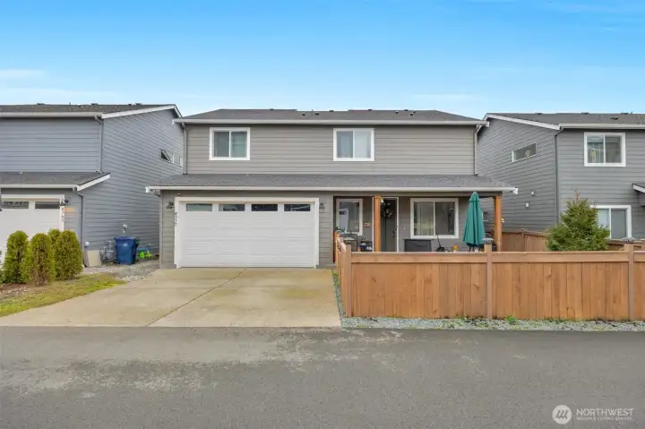 Welcome to Bella Cresta — Beautifully designed 2,447 sq ft home offering comfort, flexibility & modern style. This 4-bed, 3 bath home features a stylish kitchen with quartz countertops, stainless steel appliances, and a large center island, seamlessly flowing out into the living area with stunning hardwoods. Bedroom on the main, right next to a 3/4 bath and a pocket office. Upstairs, a massive primary suite, two addtl bedrooms + a versatile loft add flex living space. Covered porches for easy indoor-outdoor living. Modern comforts include an energy-efficient heat pump and central AC (even a mini split in the garage!) while being close to shopping, dining & parks. Double parking on both sides of the home for your convenience. Welcome home!