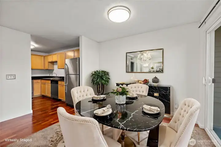 Charming 2-bedroom, 1.5-bath townhouse with 1,092 sqft in the peaceful Hudson Ridge community. This two-level home offers a bright living room with a cozy fireplace and large windows. Dining area that opens to a private patio, and access to community amenities including a pool, exercise room, and clubhouse. The home features new main-level flooring, updated kitchen countertops, and freshly painted interior, offering a clean and move-in-ready feel. Ideally located near downtown Des Moines, the waterfront, shopping, dining, parks and Highline College. Easy access to bus stops, freeways and light rail. HOA Covers Earthquake Ins., Water, Sewer, Garbage, Lawn, Road and Common Area Maintenance. Assigned covered parking spot #154, and ample guest parking.
