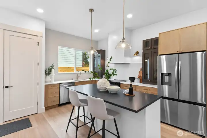 A private, multi-generational estate, beckons your call! 3 separate structures, 2 of which are brand new & a beautifully remodeled craftsman home. Unique opportunity down a private drive with a large 2970sf, 4 bed/2.5 bath house offering a spacious, main floor primary suite. The brand new detached two car garage has a lovely, private, 642sf studio apartment above it with vaulted ceilings & wide open spaces, along with a separate entrance. You also benefit from a new construction, single level home 2+ beds/2.25 baths, covered patio, nearly 1300sf + a 2 car garage. Or perhaps for the savvy investor who wants a hands-off approach with a capstone property offering high value/rents with low maintenance. Near Northgate & the light rail station!