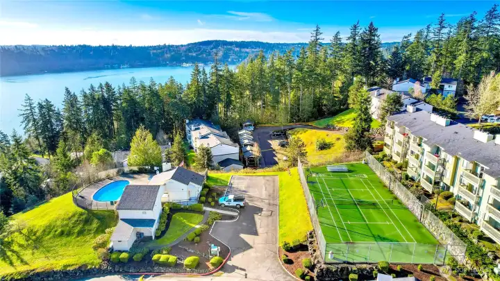 Relax in this spacious, bright, open-concept main-level condo in Sunn Fjord, featuring a rare zero-entry design and a unique floor plan. Enjoy unobstructed views of the Sound, Sinclair Inlet, and Mt. Rainier from your private deck. This home offers 2bedrooms including a large primary bedroom, one oversized bathroom, included appliances, and a cozy fireplace. Community amenities include a pool, tennis court, exercise room, and clubhouse. Located near PSNS, the Seattle Ferry, and Bremerton conveniences. HOA dues cover water, sewage, garbage, and exterior upkeep, including dryer vent and fireplace service plus fire alarm checks. Pets allowed with restrictions.