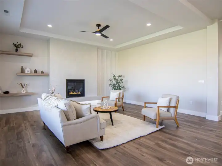 Experience luxury living in the Grandeur Plan, built by Creekstone Homes where the finest finishes and meticulous custom details create an exquisite ambiance. Enjoy durable LVP flooring and porcelain tile, a chef’s kitchen boasts luxurious quartz countertops. A spacious walk-in pantry and cozy dining nook enhance functionality, while the living room offers an elegant gas fireplace surrounded by ceiling-height tile and custom floating shelves. The spa-like primary bathroom features a deep soaker tub, glass shower with fine tile finishes, built-in shelves and cabinetry, motion-activated lighting. Make sure you don't miss the chance to make this dream home yours, complete with preferred lender incentives. Feature list available.