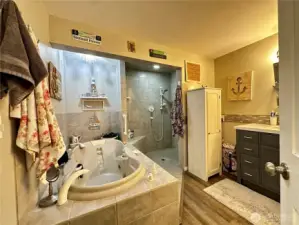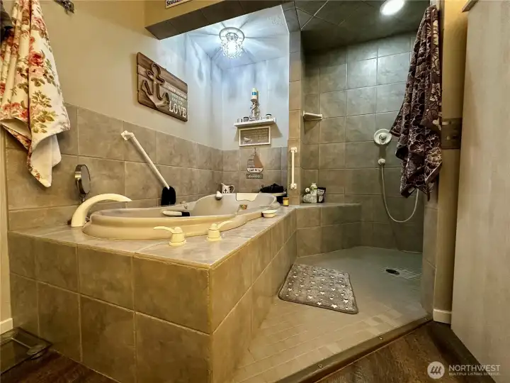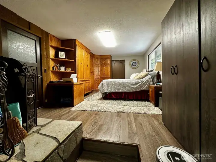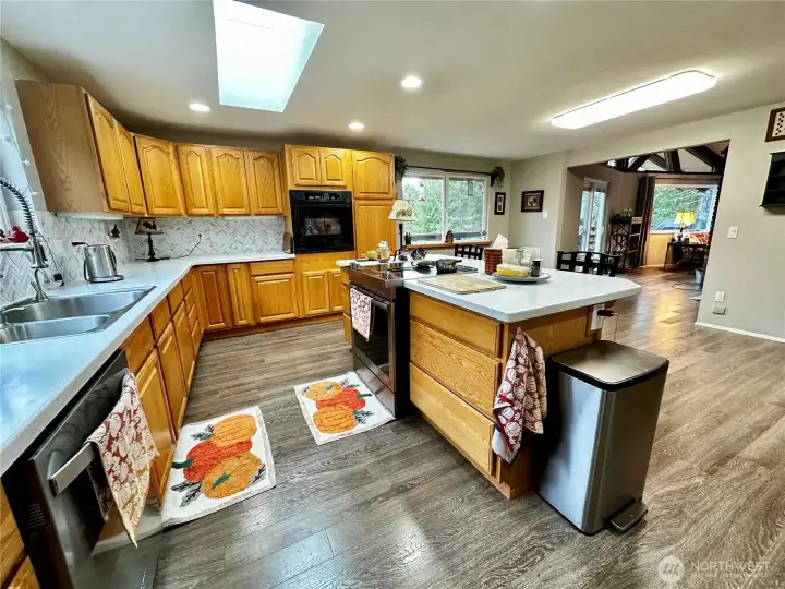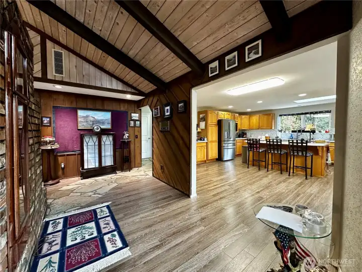 Set on over 5 private acres, this distinctive 2270sf home blends warmth, character, and modern comfort. Vaulted ceilings, exposed beams, and a striking stone-inlaid floor that flows like a river create a dramatic entrance into the spacious living area with fireplace and built-in grandfather clock. The large chef’s kitchen features a Jen-Air range, additional wall oven, new refrigerator, and abundant cabinetry. The primary suite offers a jetted tub, curb-less multi-head shower, walk-in closet, double vanity, and bidet. With 3 bedrooms plus a den, two fireplaces, and an assumable loan under 3%, this is a rare Sequim opportunity.