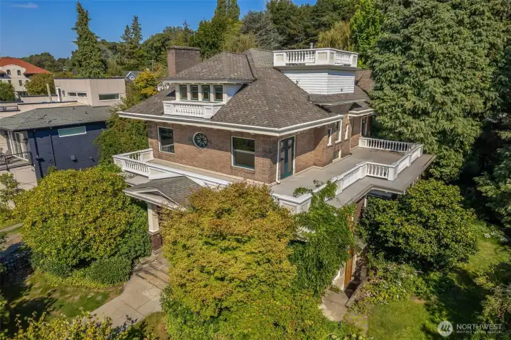 The JW Bullock Residence; Thoughtfully maintained and preserved, this North Capitol Hill Estate sits prominently on 10th Ave E across from St Marks and close to all that is good in the city. On a double lot, 10,000SF lot of lush plantings surround the house. Main floor features light wood moulding, multiple leaded glass pocket doors and gorgeous lighting. Lower level includes an established 2 bed ADU which can fetch $2,700/month or easily incorporate into the living space of the whole house. Upper levels have large decks, 6 generous bedrooms including a primary suite with sitting room, and 2.5 baths for a total of 4.5 baths in the house. Detached garage +2 EV Chargers in double driveway. Live a life of Seattle legacy in this special home.