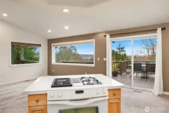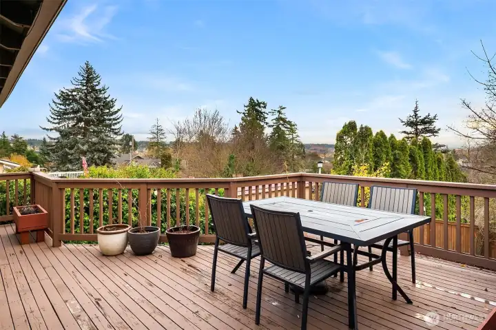 Incredible opportunity to secure a spacious view home at an attractive price point. Gleaming tile floors and a vaulted great room with gas fireplace and dramatic picture windows create a bright, inviting feel. Open kitchen with maple cabinets and ample storage. Large glass slider leads to an entertainment-size deck with sweeping territorial views and stunning sunsets. Lower-level primary suite features walk-out access to a huge patio and backyard plus a 5-piece spa-style bath. Oversized lot extends well beyond the back fence and offers endless outdoor potential for gardening, pets, or future projects. Light-filled spaces throughout. Exceptional access to major highways, transit, and Sea-Tac Airport.