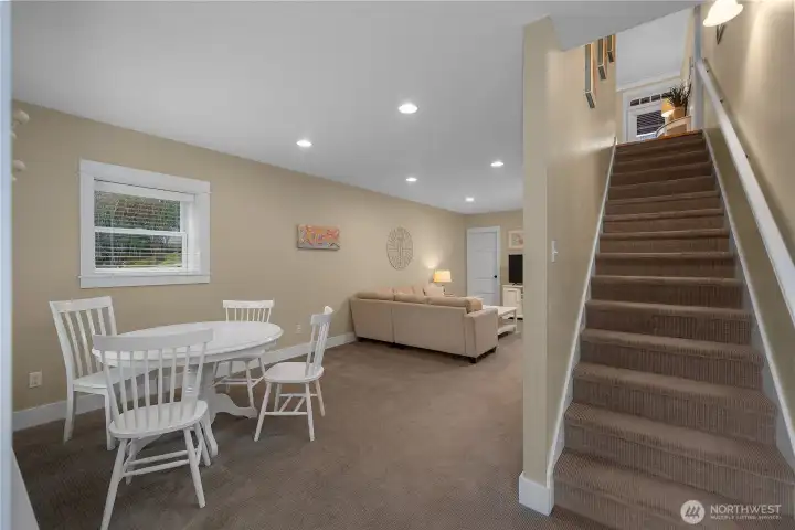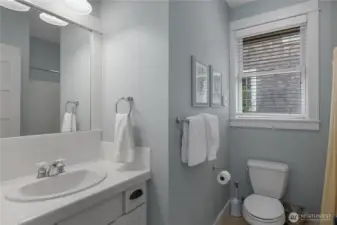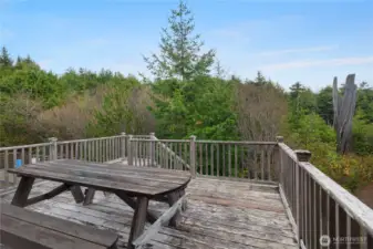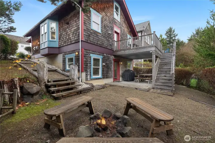 This spectacular 4-bedroom, 3-bath Seabrook home captures the essence of coastal living. Its unique placement makes it one of the most central and private properties in town. Inside, a gourmet kitchen and dining room create a single, bright, open space. The home also includes a large media/rec room and an additional 500 sq ft flex space (on top of the 1918 sq footage) above the main floor spanning the full length of the house . Step outside to an oversized deck overlooking a quiet natural setting. The forested area behind the home offers walking trails, a large bike shed, and a private fire pit. This beach home is sold fully furnished and has a proven track record as a vacation rental.