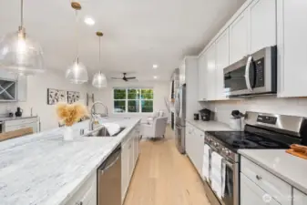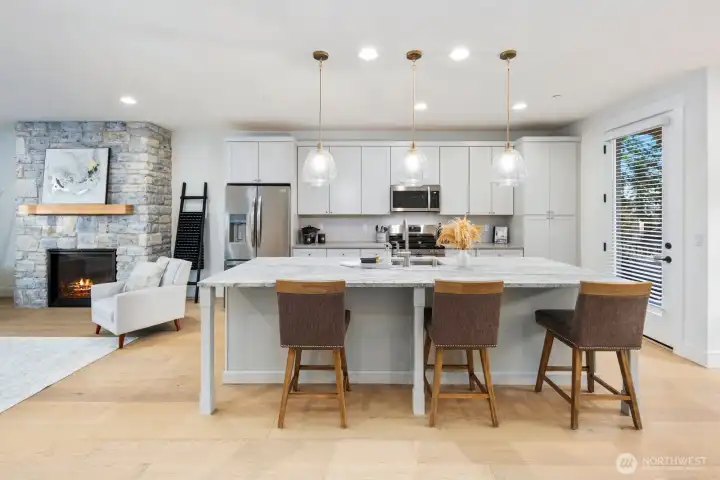 4.99% rate w/ $50k builder buydown. New construction 4-bed in Bothell by Gleneagle Homes. thoughtful multi-gen design features full ground-flr suite w/ kitchenette great as 2nd primary/MIL/rec space. Airy open concept main w/ chef’s kitchen: huge island & Aristokraft shaker-style cabinetry, SS appl (upgrade to gas range for $1,800) walk-in pantry, buffet w/ bev fridge & wine rack. Gas FP w/ river rock surround. Ceiling fan + mini-splits for yr-round comfort. Seamless flow to covered deck off kitchen. Den + powder on main. Top floor has 2 beds + Primary w/ ¾ ensuite & WIC. Laundry w/ WD. Window treatments & wide-plank HWs. Private patio & fully fenced yard. Ideal commuter location. Secs to Mill Creek Town Center.